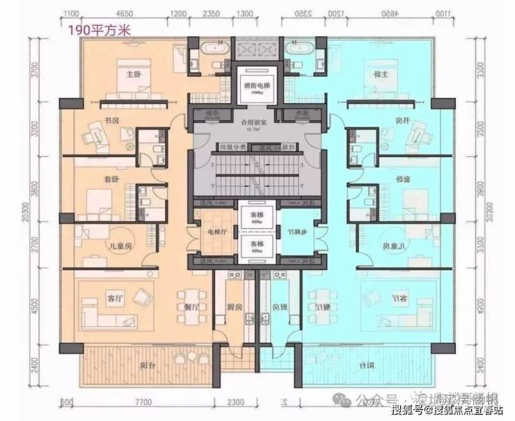 左边最高,43层,3梯两户,1栋。全部是190户型,四房,72%使用率。190的四房,非常舒适的尺度了。