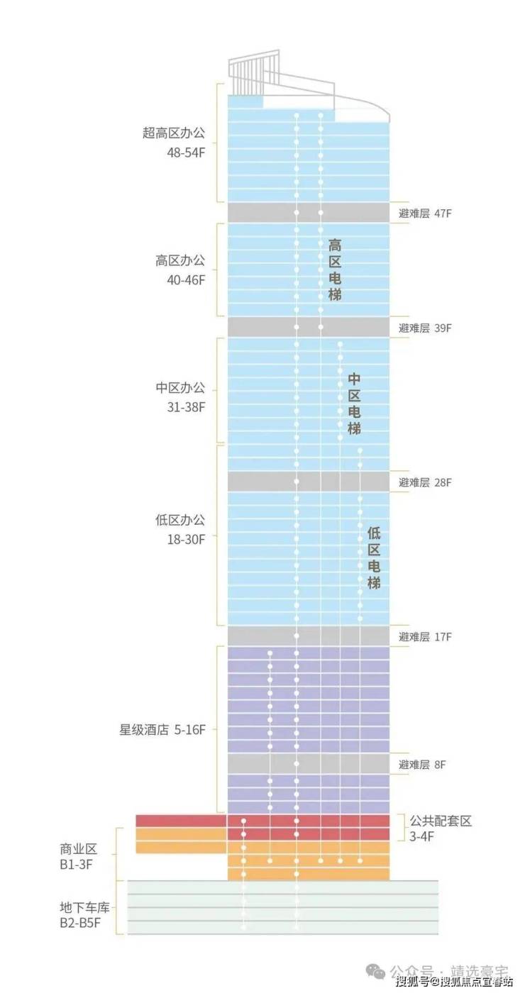【层高】:标准层高4.2米,超高区(48F以上)4.5米