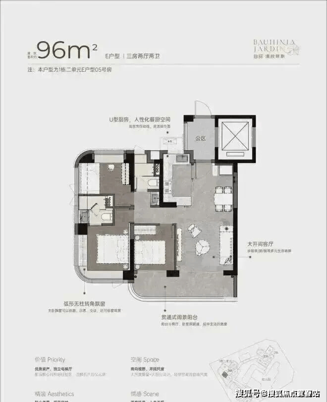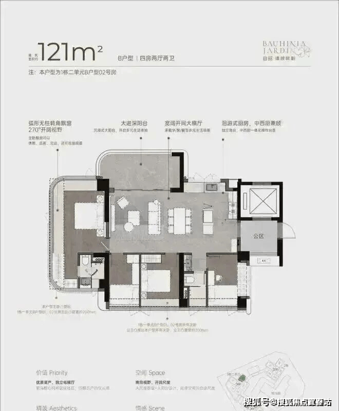 • 270°弧形无柱大尺度飘窗、大宽厅、大阳台,带来更多使用空间。