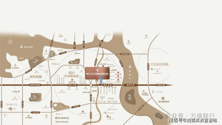 咽喉之地,全省通衢;位于海南国兴大道的核心区域,坐享国兴大道双向十二车道的城市交通便枢纽,四通八达,距离省委1公里、海南省政府约3公里、海秀快速路约4公里、龙昆南立交桥约5公里、海口东站约5公里、美兰机场约15公里