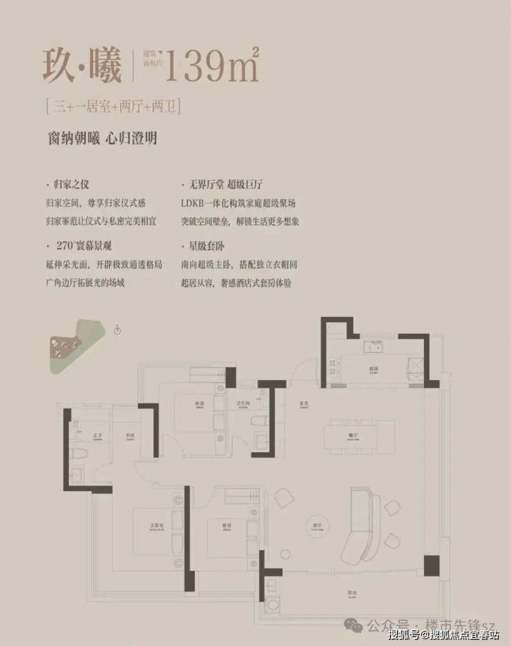 三、139㎡3+1房2卫:16-32层最优楼层5.74-5.95万/㎡,总价不到830万,就可以买到200方大户型的景观视野及空间享受,也是项目最稀缺、最靓的楼王景观单位,全玖章最好的一条139!