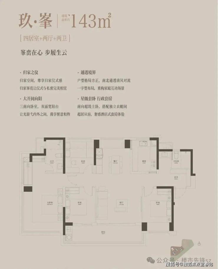 二、143㎡4房2卫山景单位:项目唯一的楼王山景户型,可无遮挡看一线大运景观,特别是开阔的山景景观,16-32层最优楼层5.16-5.31万/㎡,总价仅741-762万,部分低区楼层可以做到735万以下