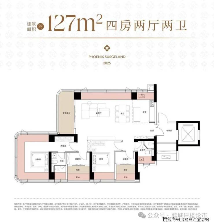 真纯粹:约127-300㎡新规改善大宅,四房占比超87%,主力户型专梯独户,尽享纯粹圈层生活;