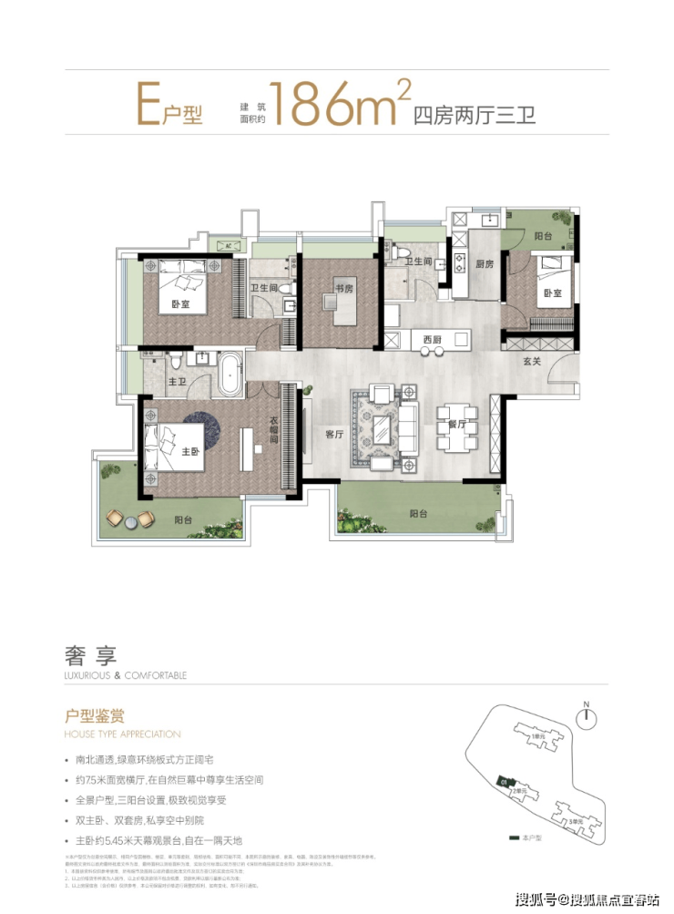 面积:约90-110-155-186㎡2-3-4房