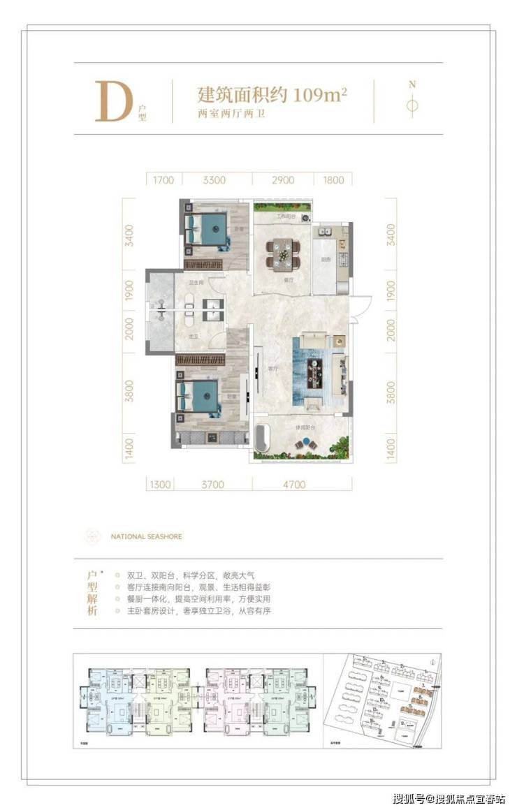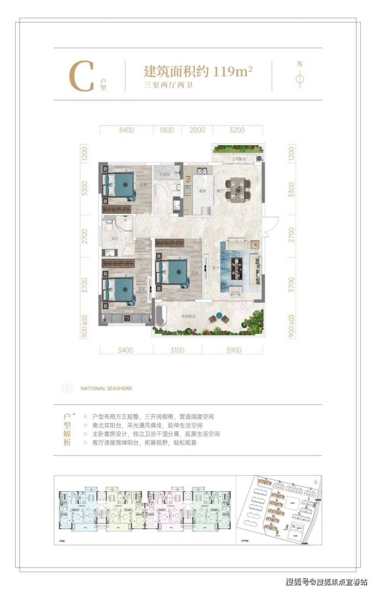全新迭代建筑面积约109-119㎡升级户型,空间布局科学合理,全明户型,南北双阳台,270°环幕视野,重新定义高端品质人居尺度。