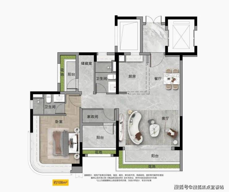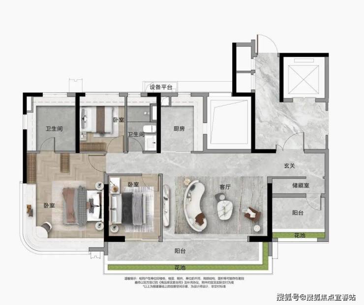 :区域内罕见小户型,带入户花园,最大4.9米开间大方厅,主卧270°转角飘窗,全屋采光面约12米,极致采光和空间布局,超高使用率。