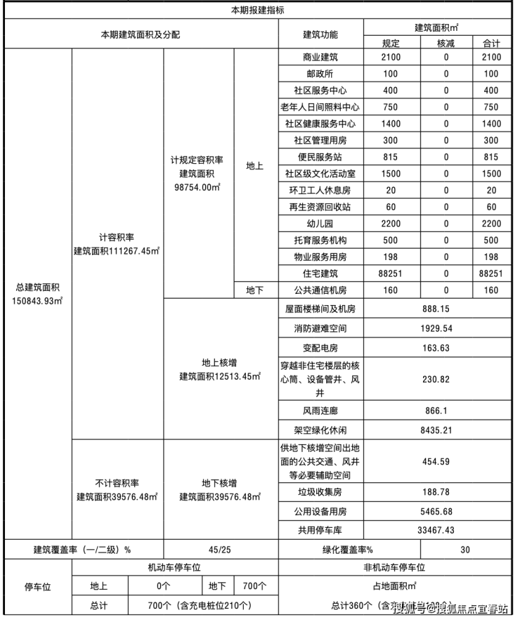 总建筑面积150843. 93㎡,住宅建筑88251㎡,商业建筑2100㎡,还有社区服务中心、老年人日间照料中心、社区健康服务中心、社区管理用房、便民服务站、幼儿园、托育服务机构等配套。