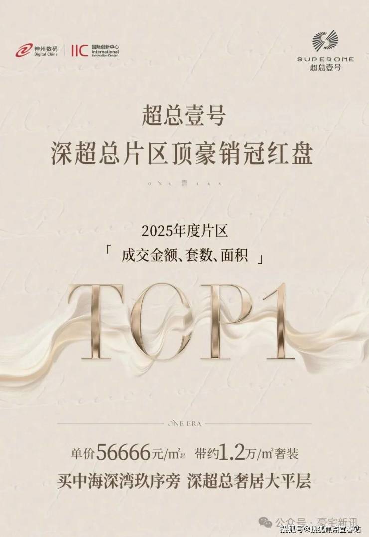 IIC超总壹号作为深圳湾超级总部基地核心区唯一在售的私域总裁会馆,由神州数码集团开发,地处南山区深湾二路与白石三道交汇处,雄踞深超总“超级十字”中轴核心,与招商银行、中国电子、万科、中兴通讯等16家世界500强企业总部为邻-2。项目总建筑面积约25万㎡,建筑高度约200米,由东西双塔组成,集总部办公(约9万㎡)、总裁会馆(约4万㎡)、云端会所、精品商业于一体-1。项目于2023年竣工,2025年底已精装交付,现为实景现房,即买即住。物业由仲量联行提供顾问服务并获金钥匙认证,物业费15.8元/㎡·月-4。