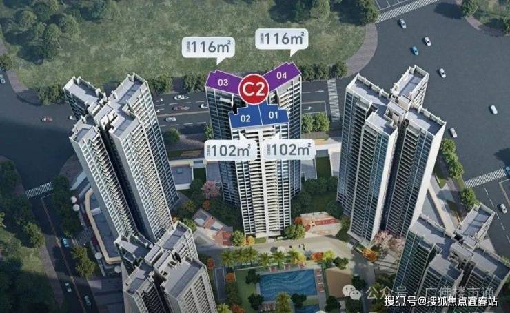 加推 C2栋 2T4户,32层高,每个户型仅62套