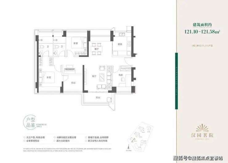121㎡4房2厅2卫:2条腿,位于1栋4单元东南朝向看花园;南北通设计,相较于110多了10㎡但多了一个房,推荐。