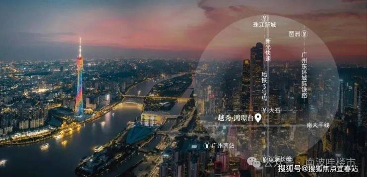 【越秀·鸿璟台】占位第三中轴在番禺的首个节点,精准串联天河、海珠、番禺三大核心区,精准承接广州两大核芯 CBD——万博与珠江新城商圈的资源辐射。相较于中轴其他高密高溢价板块,这里既拥有高效的通勤效率,又具备舒适的居住环境,是难得的宜居生活中心。项目位于番禺·南大干线北侧、地铁 3 号线地铁站旁,如此优越的地理位置,使其成为城市繁华与舒适生活的完美结合点。