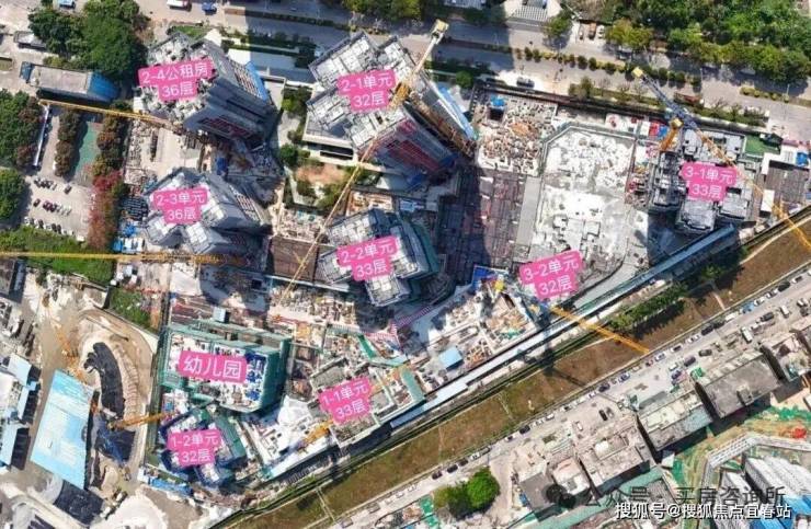 项目共由8栋32-36层高住宅组成,1栋1单元/2栋2单元/3栋1单元住宅33F,1栋2单元/2栋1单元/3栋2单元住宅32F,2栋3单元/2栋4单元住宅36层,4栋是1所9班制幼儿园。