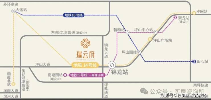 2条地铁:19号线(在建)和14号线交汇站“锦龙站1.3公里”,不仅能增强内部交通,同时4站达大运,9站达布吉,12站直抵福田岗厦北,极为便利;