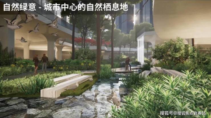 承袭山水意境引黄歧山意象入社区,社区公园区域依照黄歧山水做主动脉构成草甸、溪流、雨林、峡谷、瀑布场景,诞生出如画搬的游踪体验,创造出贴近城市界面康体餐饮、聚会交流场所。