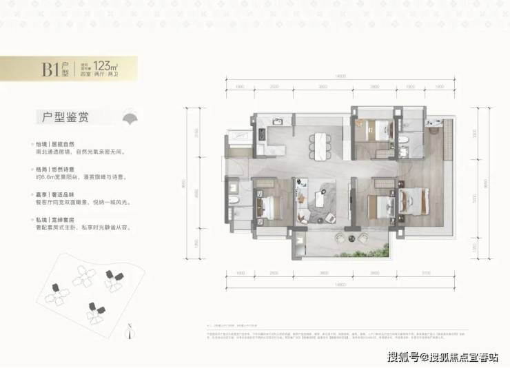 这是首批推出的最大户型,采用LDKB一体化设计出来的升级版四房户型,足以比肩其它产品的180+㎡的空间尺度感,属于可变4+1格局。