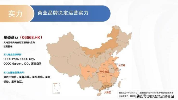 大湾区领先商业运营服务供应商上市企业(06668.HK)星盛商业,运营管理五大商业品牌系列:COCO Park、COCO City、COCO Garden、iCO、第三空间,五大主题馆品牌系列:星居生活馆、星趣小镇、星悦琳廊、星跃领动、星享食汇。