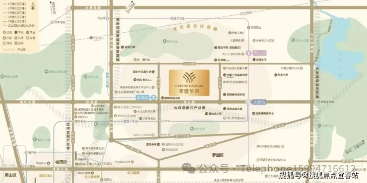 区域与交通优势:翠园华府位于罗湖“东进战略”的桥头堡位置,享受粤港澳湾区及先行示范区政策利好。项目距离3号线水贝站约650米(也有资料称为710米),步行约9分钟即可到达;同时,距离5/7号线太安站约900米,周边还有清平高速、北环大道、丹平等交通干道,以及正在建设中的清水河高铁站和罗湖火车站,出行条件十分便利。