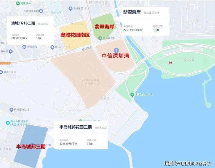 从价格来看,距离中信深圳湾目最近的小区:翡翠海岸、半岛城邦花园三期、奥城花园南区等二手房挂牌价均在22万/㎡左右,甚至巅峰期价格一度到达30万+/㎡。