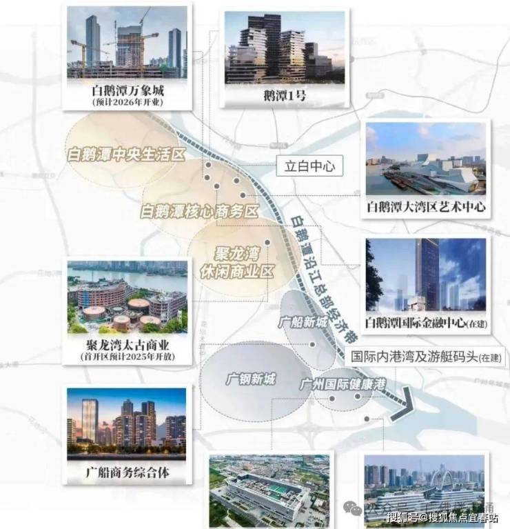 作为西翼CBD,则以重奢为支点、以沿江带为依托,开辟了一条带状连片、向外辐射的发展路径。白鹅潭不但产业猛进,各个维度的兑现相当“勤奋”。从搞商业、促旧改到建枢纽与修路桥,整个板块总让人常看常新。