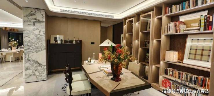 踏入样板房的瞬间,客厅与餐厨的通透质感便直击人心。大面积雪花白大理石从地面延伸至墙面,天然纹理在光影流转中宛如流动的画作,尽显自然艺术之美。森磊建设对选材近乎严苛,每块大理石都历经多轮筛选,确保纹理连贯、质地上乘;再以专业切割与无缝铺贴工艺,让空间浑然一体,格调自显。