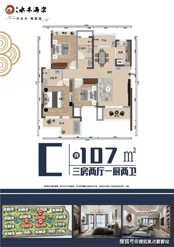 建筑面积约107㎡;3室 2厅 1厨 2卫 大阳台 入户泡池