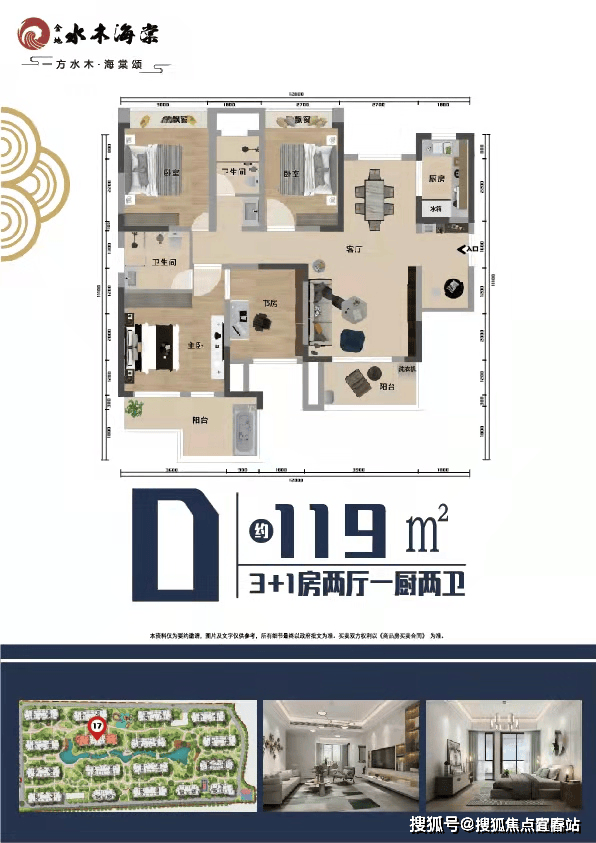 建筑面积约119㎡;3+1室 2厅 1厨 2卫 大阳台 入户泡池纯板式 一梯两户 南北通透 精装拎包入住