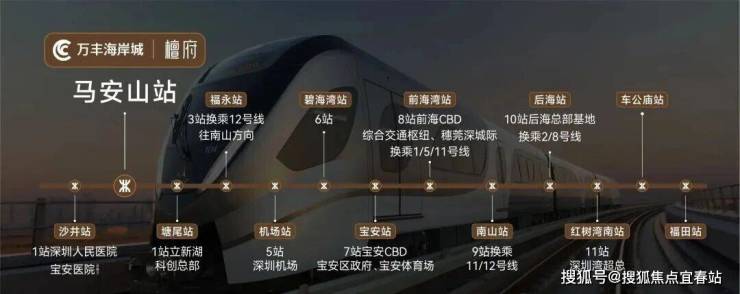 这次海岸城檀府距离11号快线马安山站直线仅300m,5站到机场,7站到宝中。换乘1号线还可通勤南山科技园、后海、福田中心和车公庙等。