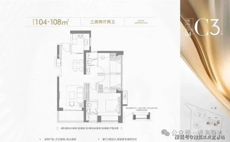 可售户型:103㎡三房两厅两卫、129㎡四房两厅两卫