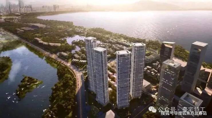 由4栋51至63层3.6-3.9米层高的纯居住奢装交付地标、两栋4.5米层高的小高层,35栋独栋,全景幕墙、宽景阳台。