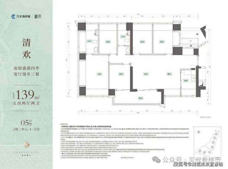 💎约139㎡5房2厅2卫南向横厅大五房,南北通透,片区独有!💎户型亮点:• 15米大面宽,约6.8米景观阳台,无遮挡公园视野• 奢配主卧进深4.5米,主卫双飘窗采光可作双台盆• 全屋12个飘窗,懂收纳更懂空间使用
