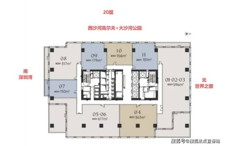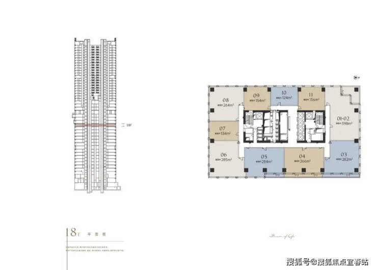 更有 20 层定制户型,均为毛坯交付,支持整层 / 半层出售,包括 651.57㎡、767.57㎡、697.49㎡、442.16㎡等超大尺度空间,为企业总部、高端私人会所提供专属定制可能。