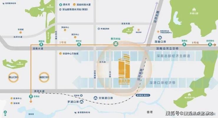 【三大口岸】:罗湖口岸、莲塘口岸、文锦渡口岸,三大口岸簇拥,链接深港。