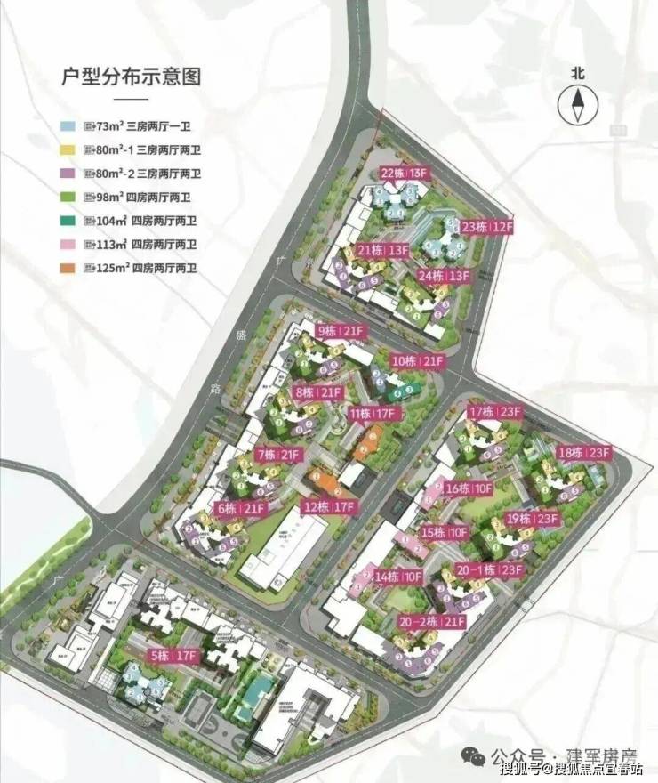 2号地块:6/7/8/9/10栋商品房21F,11/12栋商品房17F,13栋是幼儿园。