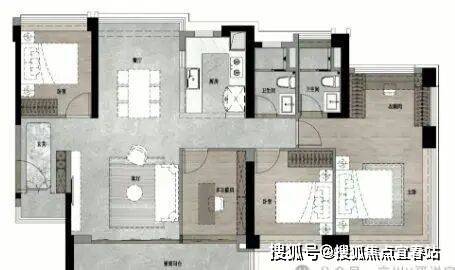 :独立步入式衣帽间和360°环幕景观主卧,增加了X空间,满足更大尺度的家庭互动需求。