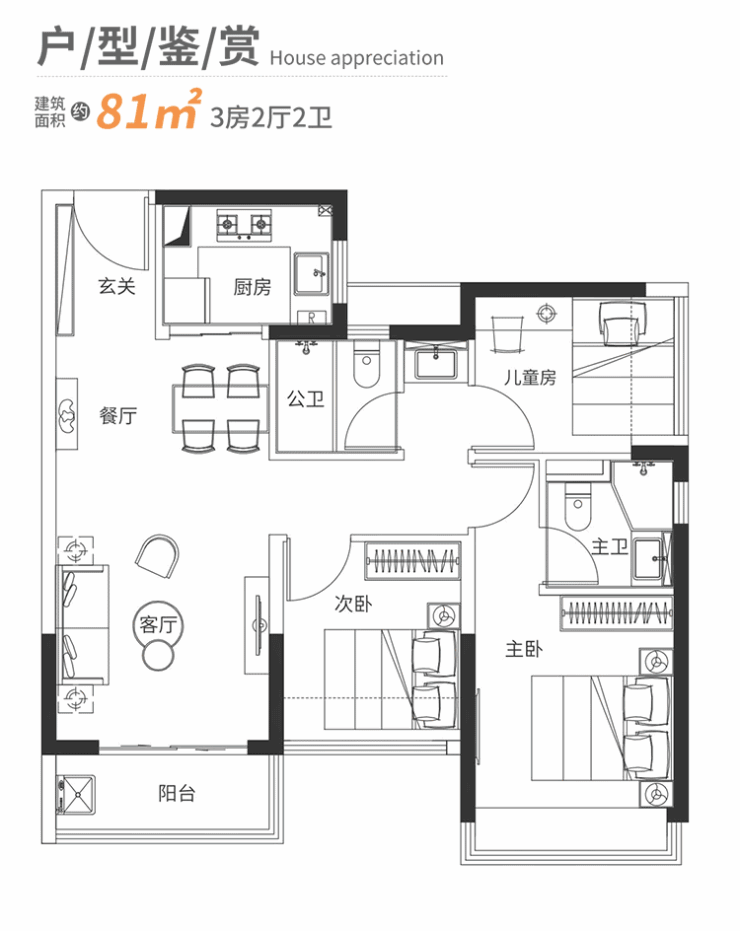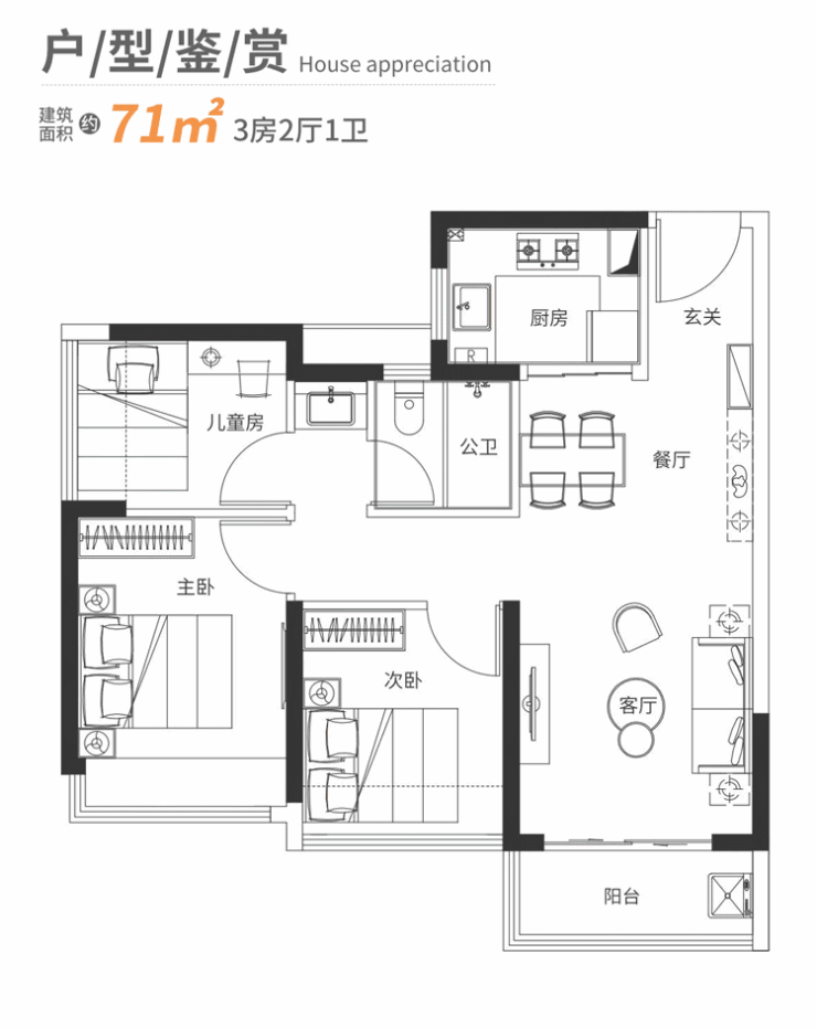 建面约71㎡和建面约81㎡的户型从总体结构上来看差别不大,有共同的突出亮点: