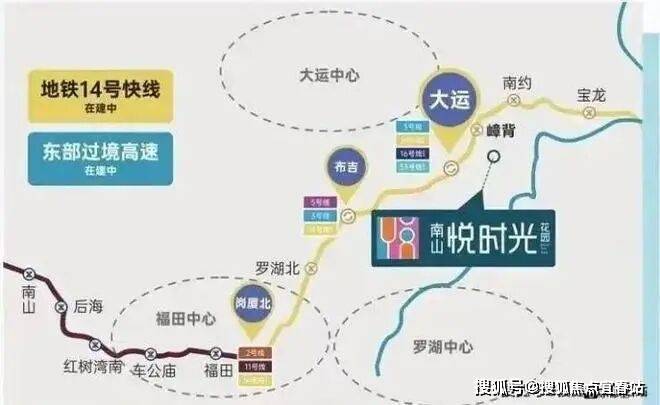 东部首条快线——14号线快线,时速达120公里,预计2022年9月底通车,南山悦时光毗邻嶂背站,1站大运,8站福田,30分钟直抵福田中心。