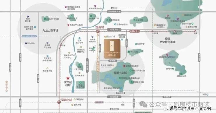 位于深圳龙华区观澜核心地带,隶属鹭湖中心城,被定位为深圳市级功能中心,与北站国际商务区共同构成龙华“双中心”发展格局。项目毗邻地铁4号线观澜站(直线距离约400米),处于龙华六大重点发展片区之一的鹭湖中心区。
