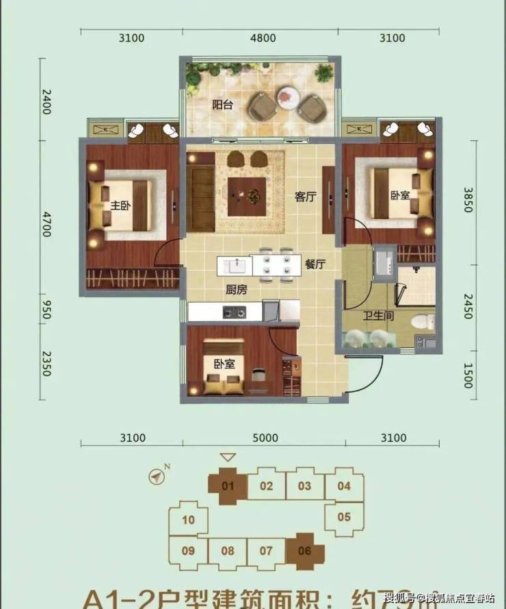 ⭐A1-2户型建筑面积:约79㎡