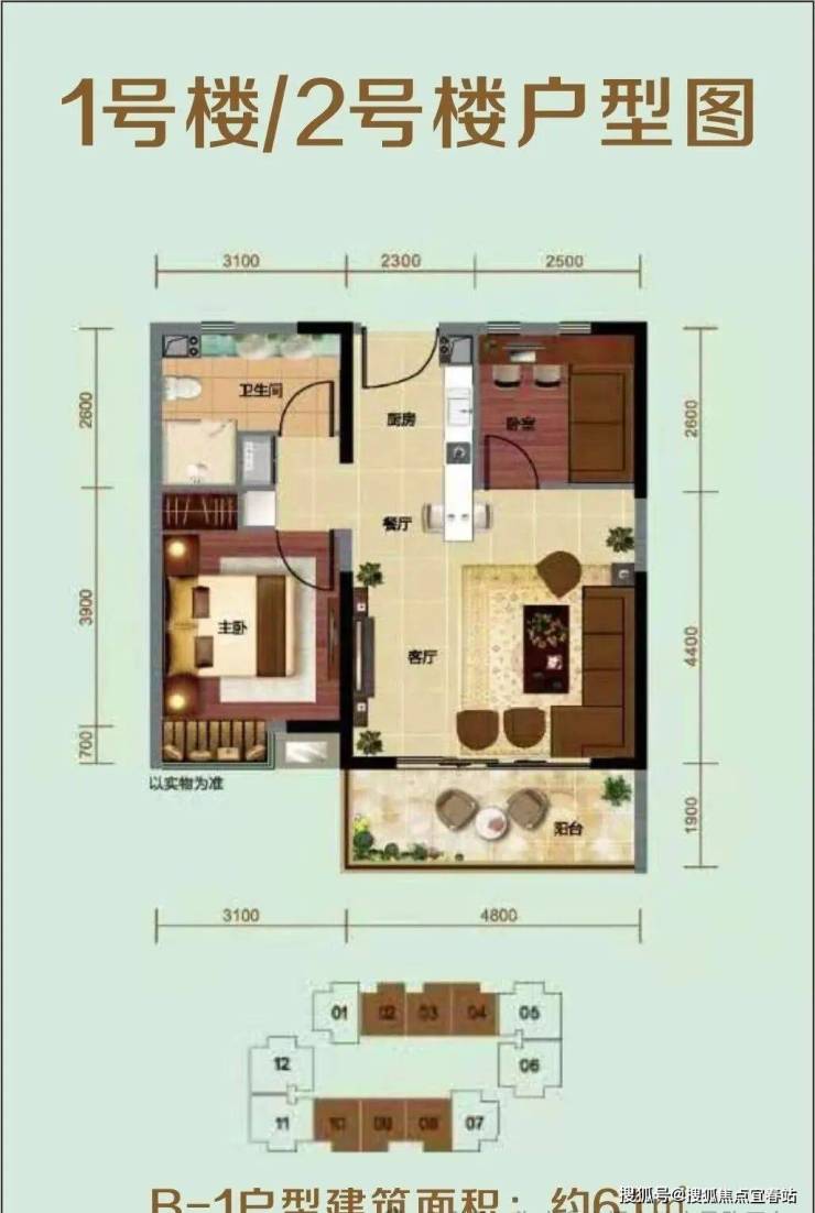 ⭐B-1户型建筑面积:约61㎡