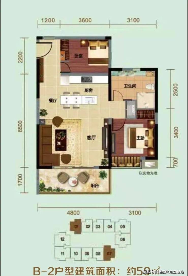 ⭐B-2户型建筑面积:约59㎡
