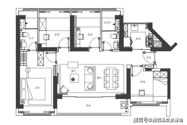 121㎡的4房2厅2卫,E户型