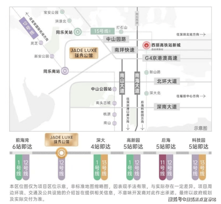 •15号线同乐关站(在建中,预计2028年12月开通),串联宝中/前海/深圳湾/西丽,也被称为深圳“一环线”,本项目为环线上的重要一环;