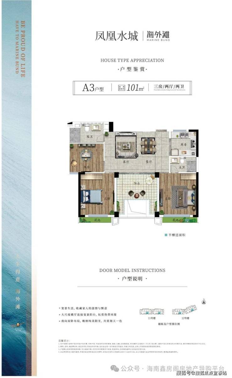凤凰水城·海外滩,采用组团式开发理念,首期推出瞰海高层产品,两梯六户、围合式户型布局;户户享大面宽采光,从功能布局至生活动线,更懂用户所需。