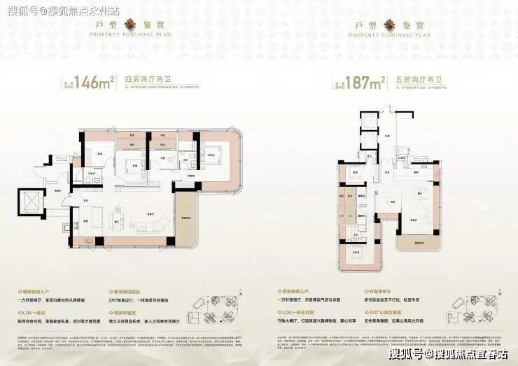 建面约146-187㎡高端四房 / 五房