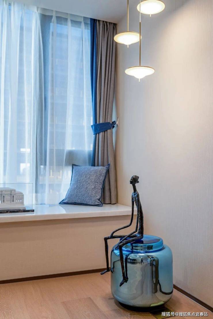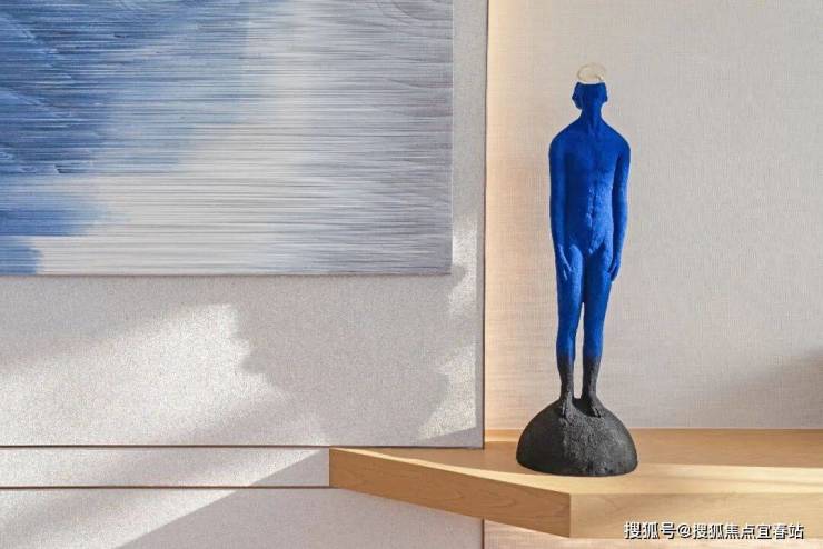 不同层次的蓝色系,与简洁雅隽的线条形成配衬,零落点缀于各处的趣致工艺小品,为空间搭建起精睿高尚的当代艺术视像,为居住人群的生活赋予崭新的定调。
