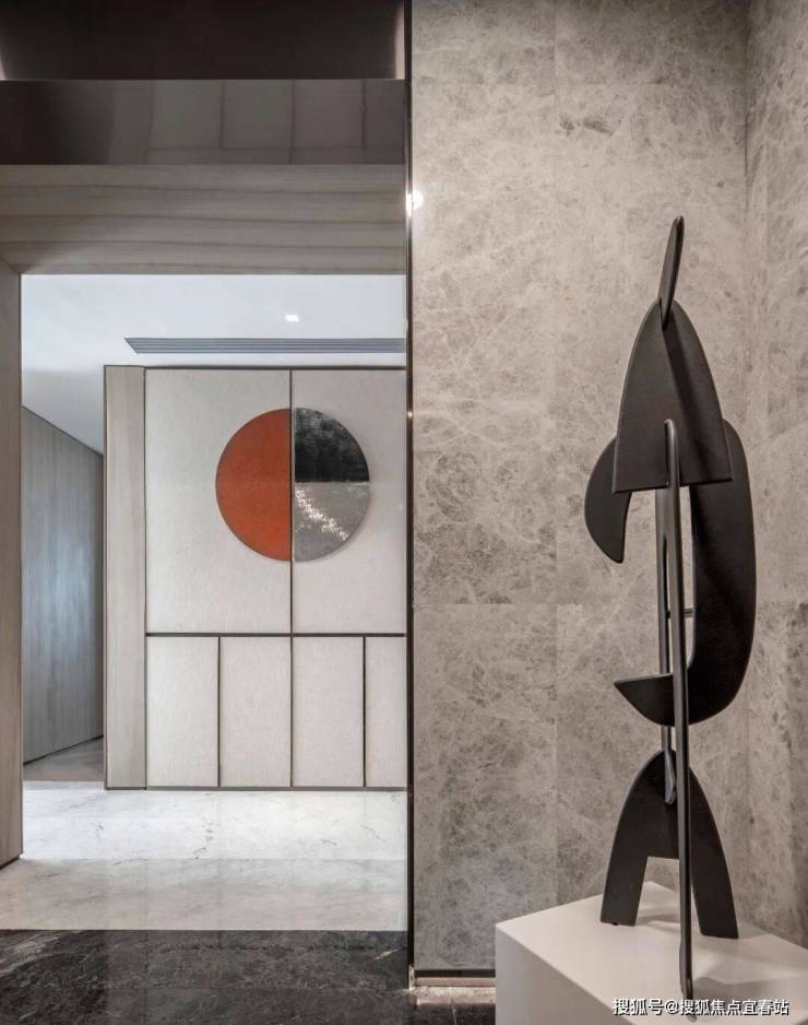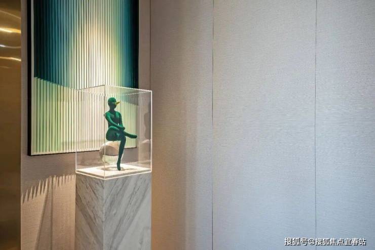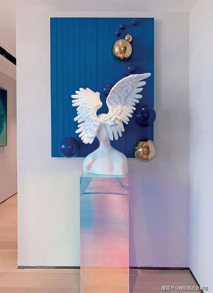 过道的雕塑艺术品为空间增添了些许梦幻与活力,艺术品都选择幻化成不同水的抽象表现形态,增添了空间的流动性、艺术性。