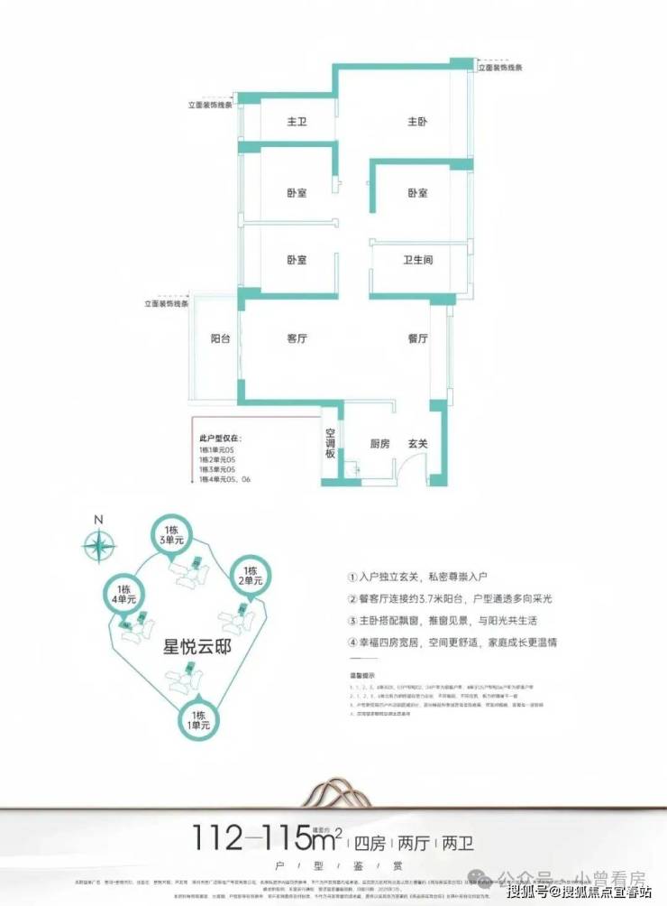112㎡的4房2厅2卫,设计的竖厅通透格局,客厅3.7米开间,进门独立入户玄关,全屋飘窗设计,4个卧室分别做到了主卧16.2㎡/次卧10.36㎡/次卧8.91㎡/次卧8.58㎡(包含墙体飘窗),得房率:78.16%(不含赠送),阳台主朝西北或东北向。