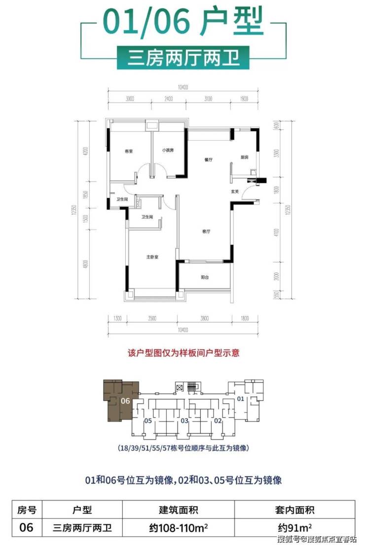 约106-110㎡三房两厅两卫