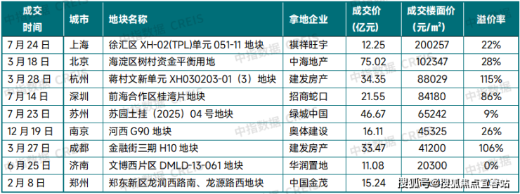 注:统计地块口径为成交价超3亿元地块