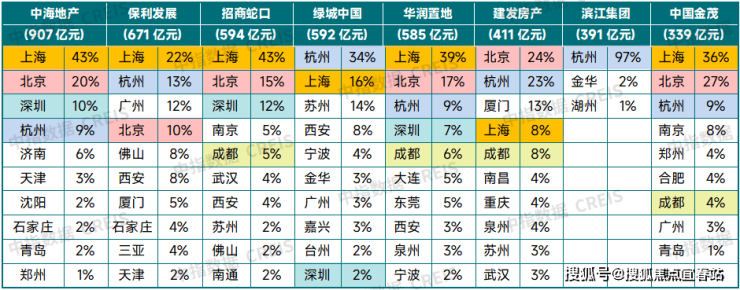 特点四:央国企仍是拿地主力,头部房企重仓上海、北京、深圳、杭州、成都等城市